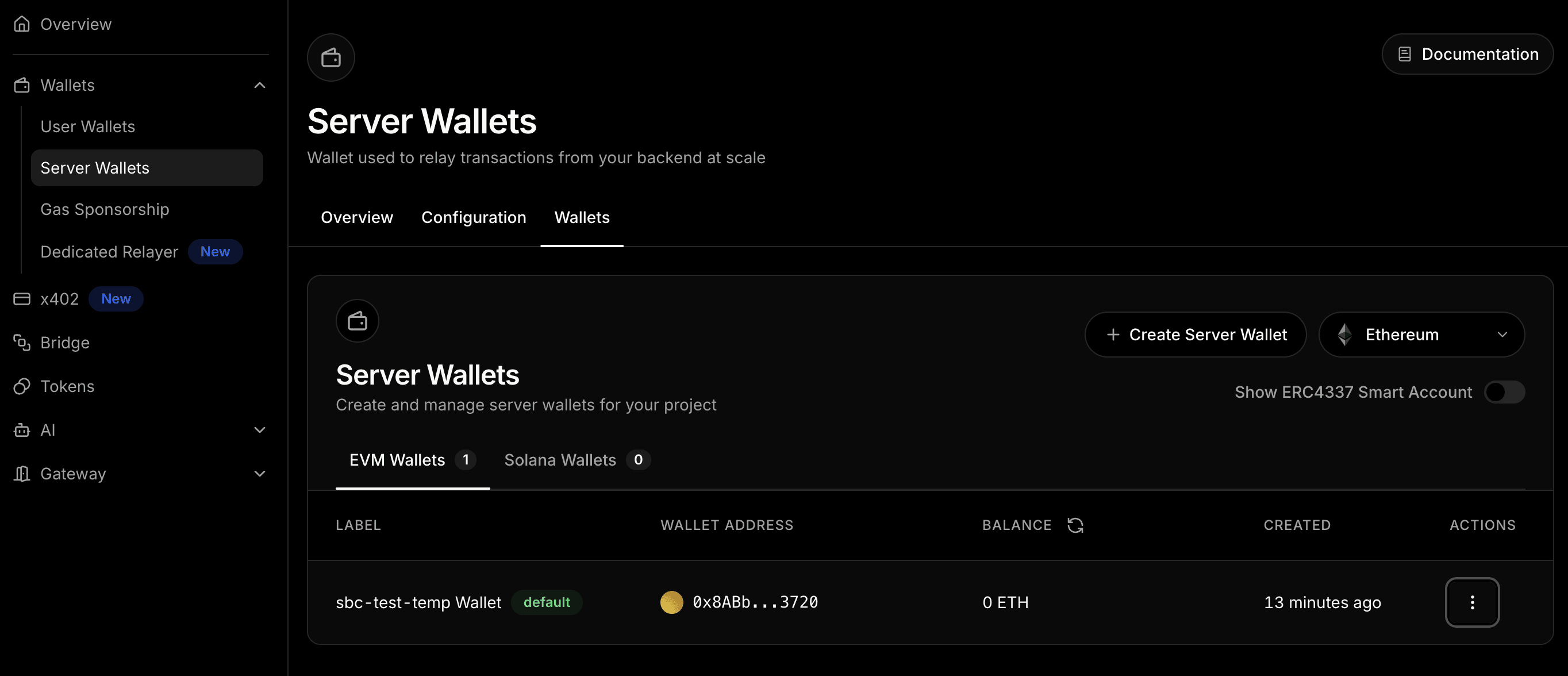 The server wallet is what thirdweb uses to sign and settle payments on-chain on your behalf. It's secured through thirdweb's Vault — their non-custodial key management system.