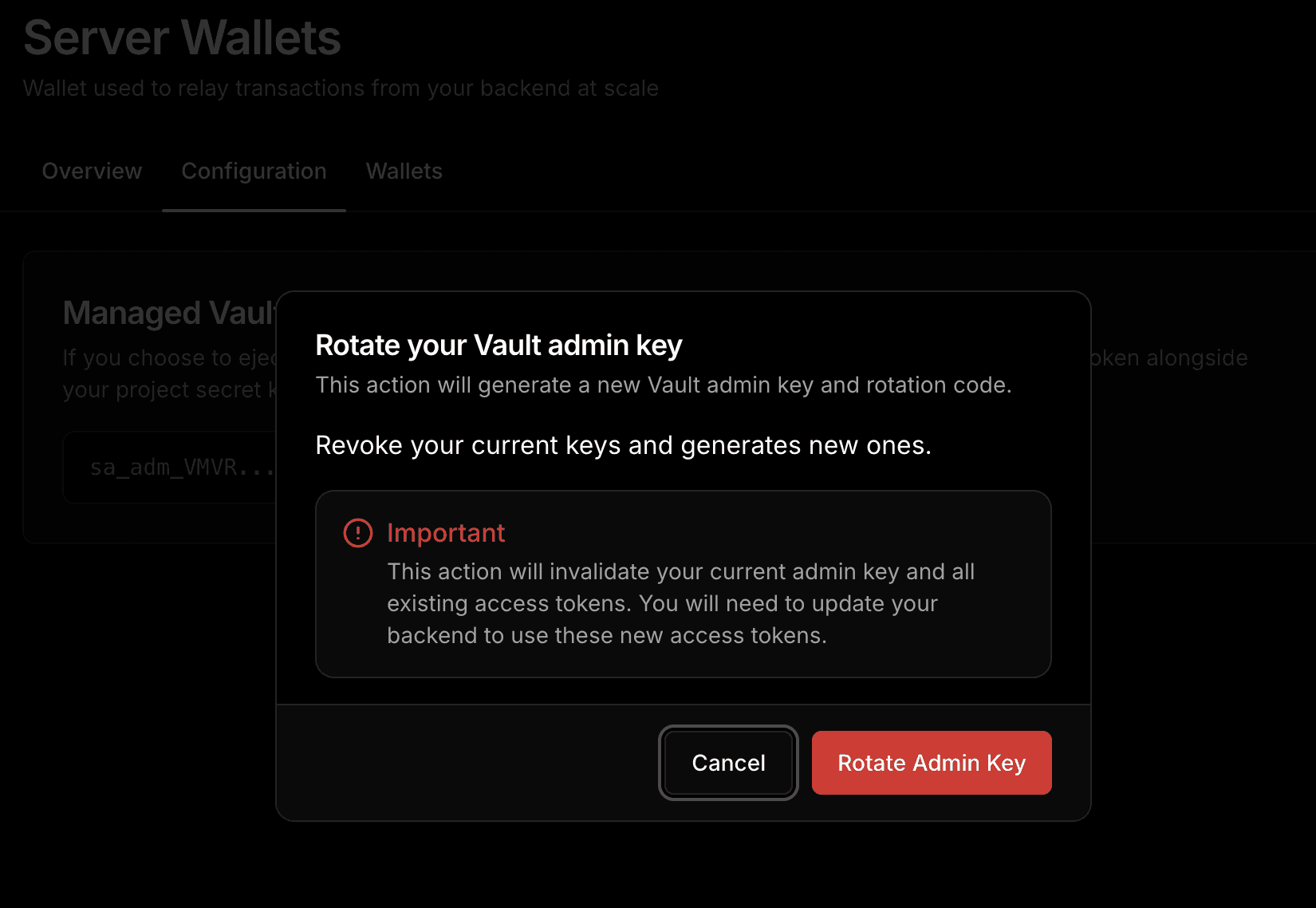 The Vault Access Token allows your backend to sign transactions using the server wallet.